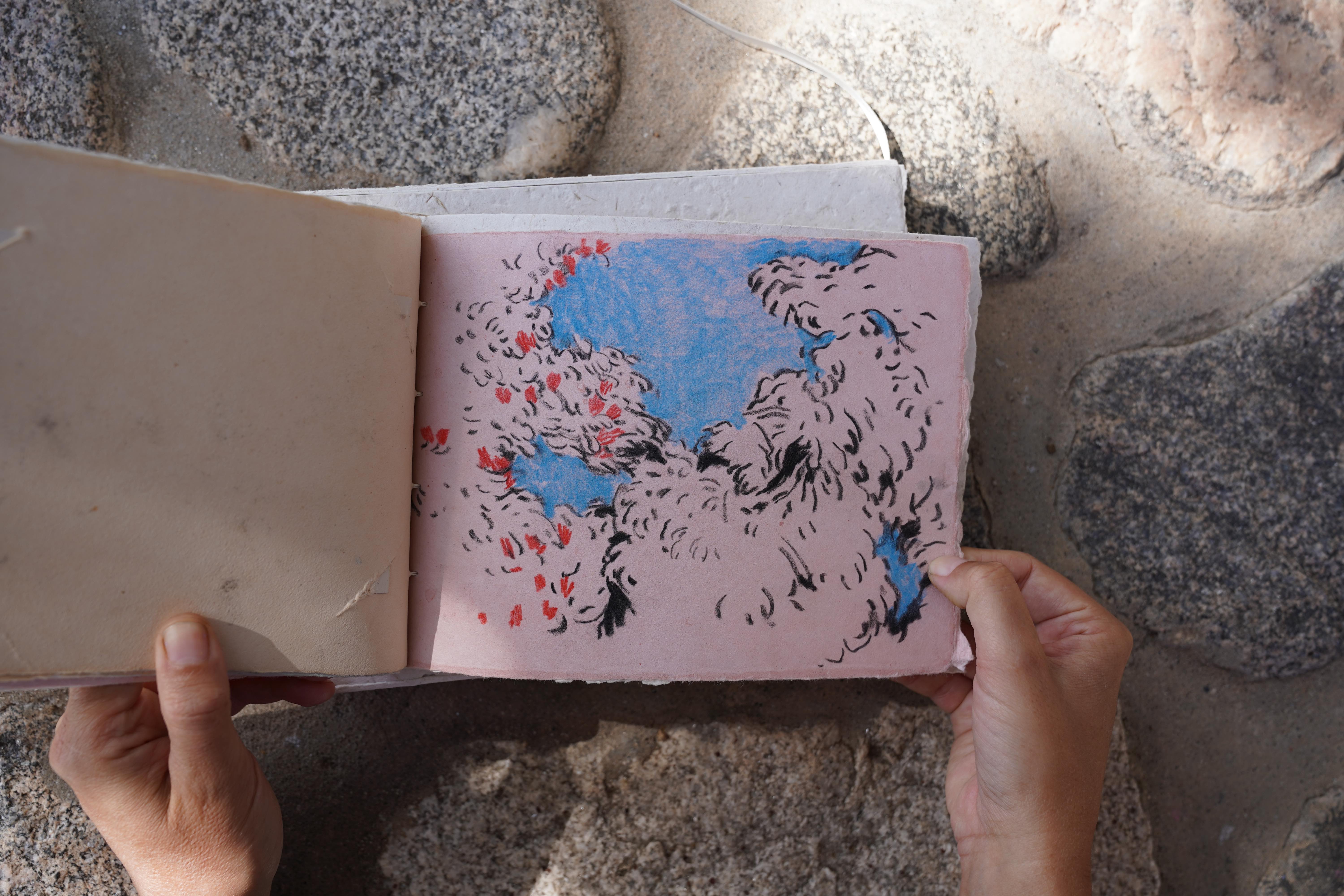 En el interior del libro hay dibujos, fragmentos de mi litografía, fotografías caseras y extractos de un texto de José Watanabe.